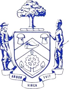 and the present day. At the bottom of the shield is a geared wheel to show the industrial