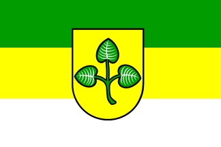 Citation: "The flag of the Samtgemeinde and city of Freren is a green yellow white striped cloth, means filled with the coat of arms of the Samtgemeinde and city of Freren in which. A sample isn't".