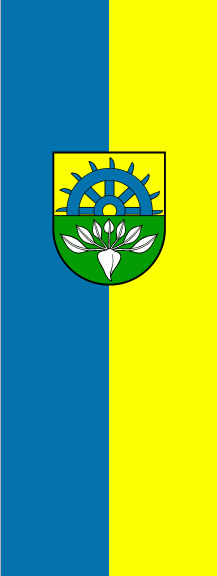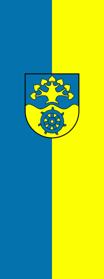 It is a blue - yellow vertical bicolour. The coat of arms is shifted to the top.