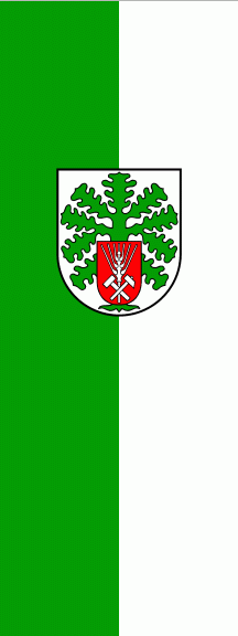 It is a green - white vertical bicolour. The coat of arms is shifted to the top.