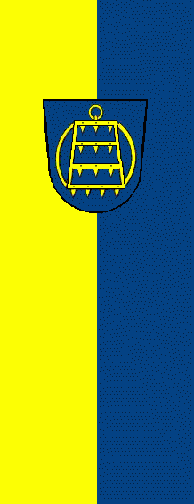 It is a yellow - blue vertical bicolour. The coat of arms is shifted to the top.