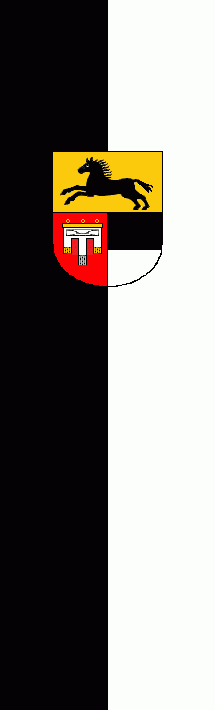 It is a black - white vertical bicolour. The coat of arms is shifted to the top.