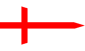 Pennant made up of two black triangles, a white chevron and a red lozenge.
