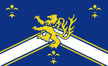 of the chevron and three smaller, yellow fleurs-de-lis in the upper left and