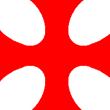 Commodore's flag - red swallowtail; at the hoist four white cones in saltire.