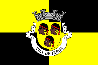 white scroll reading "VILA DE FARIM" in black