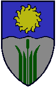 (1.) The Coat of Arms of the community: Shield divided by a wavy