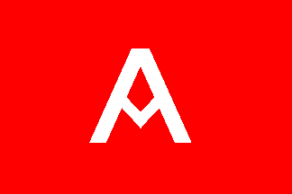 Rederi ASA. The flag is swallow-tailed, asymmetrical, red with a white diagonal
