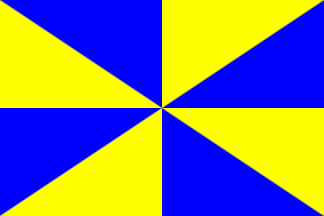 quartered flag, yellow and blue.