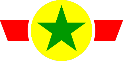 A yellow roundel with green five-pointed star and with red "wings".