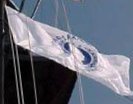 The flag of the Town of Farragut, Tennessee, is white with a blue logo on it. A description is found in the Town Newsletter from Winter 2010 (no longer available):