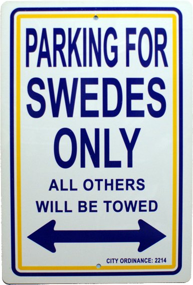 ![]() Sweden 8x12" Plastic Parking Sign $5.00 each |