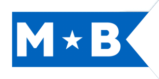 The flag of Maritim Båtforening from Oslo swallowtailed with a white-edged blue field and the letters M and B separated by a star.