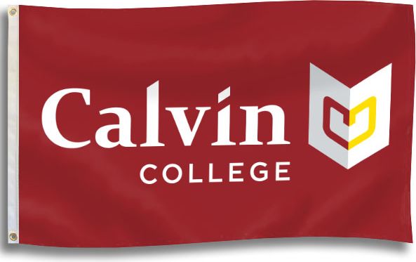white letters--"Calvin" appearing above the smaller "UNIVERSITY"--toward the