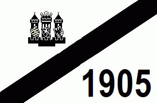 The white flag was parted by a black bend sinister, on upper hoist was the upper half of the city arms in black, on Lower fly was a black number "1905".