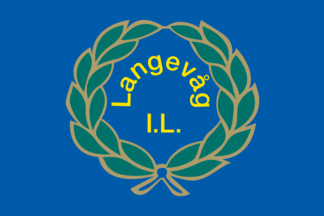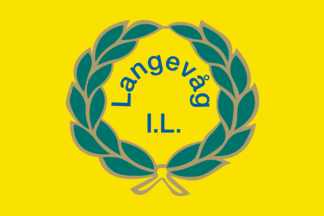 Flags of Langevåg IL (Langevåg Idrettslag) from Langevåg in Sula Municipality are blue or yellow with a green wreath centered.