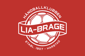 The flag of HK Lia-Brage (Håndballklubben Lia-Brage) from Harstad is red with the badge centered.