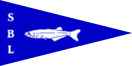 The pennant is red. Shifted to hoist is a white fish flanked by stylised white letters "SBL".