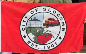 The seal is made of a white ring which is inscribed with the city name and founding year, which are seperated by a star on either side. In the center are three features core to the city. The first is the Hartford & Slocomb Railroad 913, a 1950 American Locomotive Company RS-1 diesel locomotive which ran from 1953 until 1992 where it was donated to the Tennessee Valley Railroad Museum. The second shows two tomatoes-on-a-vine, a prominent crop in the reagion and the Slocomb Tomatoe Festival. The third is the town's Gazebo located in the aptly named Slocomb Gazebo Park.