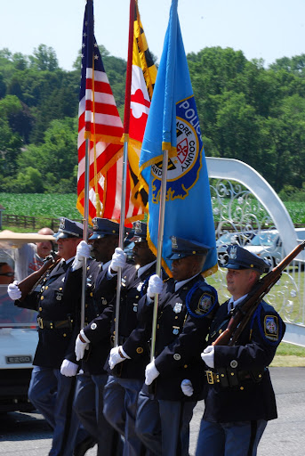 The Baltimore County Police Department is the primary law enforcement agency for Baltimore County, Maryland. The BCPD's jurisdiction does not reach into the City of Baltimore, which became an independent city from the county in 1851 and has its own police department. The flag of the BCPD is light blue with the department's badge/patch centered on the field. The badge/patch features the seal of Baltimore County superimposed on a royal blue or navy blue geographic outline of the county, fimbriated gold. The word "POLICE" appears in white letters above the county seal on the blue of the