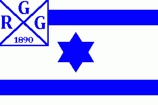 The flag was white, between two blue horizontal stripes was a blue hexagram. It emerged from the rowing department of the Jüischer Jugendbund (= Jewish Youth Federation) The flag was an anticipation of the national flag of Israel.