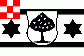 The flag was white with three centred black 6-point stars orders per fess between two black horizontal lines. The canton was chequered of nine of red and white.
