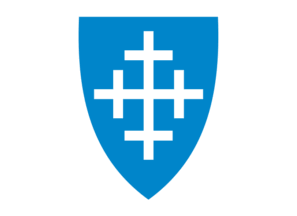 Blazon: I blått et korset sølv kors. In English: Azure a cross crosslet argent.