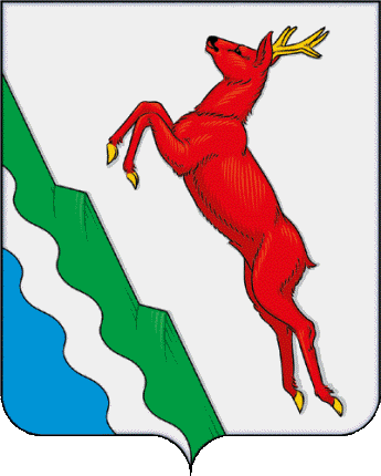 In a silver field, a red roe deer with golden horns and hooves, galloping in