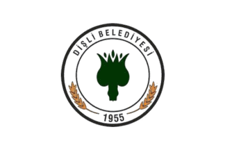 The [former] flag of Bolvadin (photo) is white with the municipality's emblem, featuring a stymized poppy capsule. "Belediye Başkanlığı" means "Municipality Presidency".