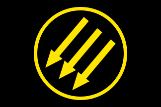 Following the example of the Timbers Army, the Seattle Sounders' supporters, who go under the name of the Emerald City Supporters (ECS), have introduced another flag with three arrows within the circle. Their large perfectly square flag also has a green field, but in much lighter shade (according to some photos, may also incline towards yellow), while the charges are in black. The ECS have been issued a formal warning from the Seattle Sounders about the use of political symbols, with which they disagreed regarding this one. It is worth noting that, despite the pronounced rivalry between Portland Timbers and Seattle Sounders, their fans' organizations have been expressing solidarity with each other regarding the use of anti-Fascist symbols.
