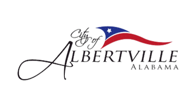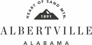 The logo shows a simplistic silhouette of a mountain with the city's incorporation year on it, with the motto "Heart of Sand Mtn." arched over it. Albertville is the largest city on the Sand Mountain plateau, and is where much of the activity is as well.