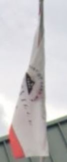 There is a flag of the City of Albertville - white with city seal on it. It
