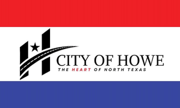 The city of Howe, Texas, adopted a new flag and logo on April 15, 2025. The new flag replaces the flag adopted in 2014 and uses the red, white, and blue horizontal stripes of the flag adopted in 1972.