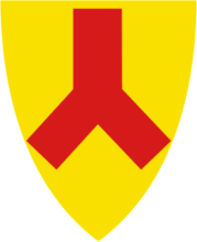 against the vertical centre line of a shield, banner of arms or a flag, is said to be