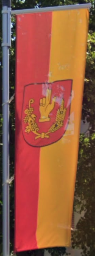 The coat of arms depicts the hand of oath. It dates back to the time when peasants were required to swear an oath of loyalty and proper stewardship to the landowners.