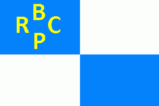 The flag was quartered of celestial blue and white. On upper hoist quarter was a yellow inscription "BRCP" ordered 1:2:1.