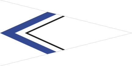 The white pennant is parted by a blue chevron cotized white black, but only at fly. The chevron is pointing to hoist.