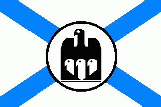 The white flag of the rowing section was parted by a centred cotized blue cross. The upper hoist quarter was a white-blue horizontal bicolour.