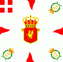 The king´s colour was a square version of the Danish national flag or Dannebrog, i.e. red parted by a centred white cross.