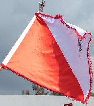 The photo (c. June 2024) shows the flag displayed in the operations room of the