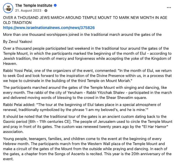 The predominant flag version shows the ancient or prophesied Third Temple in Jerusalem, with the writing below: "And they