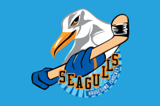 The flag of Haugesund Seagulls is light blue with the logo centered. The