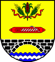 Shield Or a weaver´s shuttle Gules in fess with yarns Argent, on chief a corn cob Gules leafed Vert between two rye ears Vert, all tied Gules, issuant from base wavy of Azure and Argent a throughout bridge Sable masoned Argent. Mural crown Argent with three visible towers (village rank) and long white scroll, as often used for united coomunes, reading in black upper case serifed letters "UNIÃO DAS FREGUESIAS DE MEZIO E MOURA MORTA".