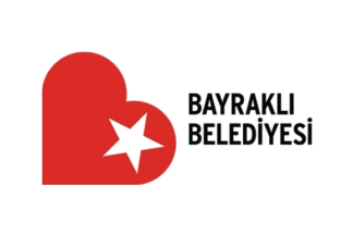 The flag of Bayraklı (photo, photo), also used vertically (photo), is white with the municipality's emblem. "Belediyesi" means "Municipality".
