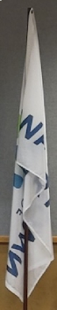 The current flag of Watertown uses a logo that appeared in 2015. The flag uses the logo without the motto.