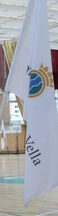 [The white flag with logo centered] was proposed on September 17, 2003 by an eminent heraldist, HE Malta's Ambassador to The Hague Adrian Strickland (with the Andorra la Vella COA researched by NAVA Member Sophie Rault) to his colleague HE Meritxell Mateu, Ambassador of Andorra to the Netherlands, who in turn will direct proposal into the proper Andorran channels. The flag is in the same 2:3 proportions as the Andorran national flag.