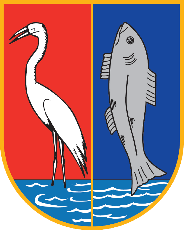 The fish and the great white egret (German: Silberreiher) in the arms obviously refer to the landscape
