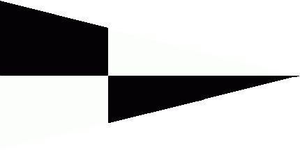 The burgee (pennant) was off-centred quartered of black and white.