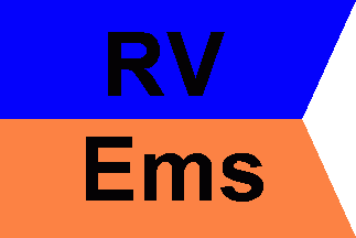 The pennant was horizontally parted of blue and orange with a centred black inscription "RV" above and "Ems" below.