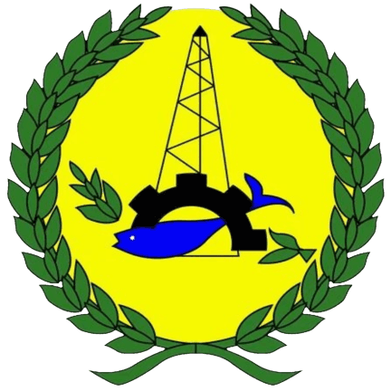 In 2011 a free-standing coat of arms was created: an oil derrick, growing out of a cogwheel quarter through which a fish swims, with part of an olive branch in front.